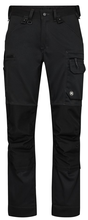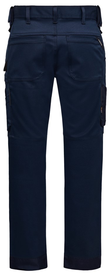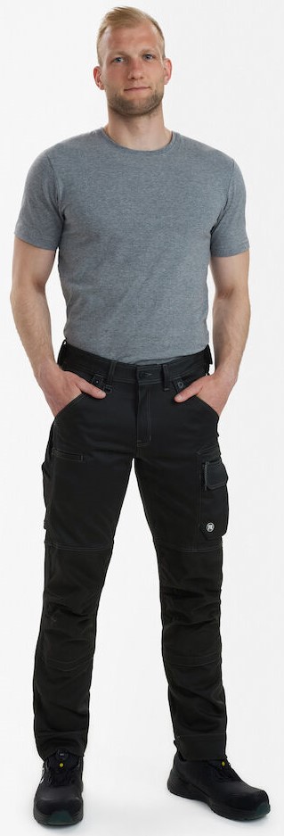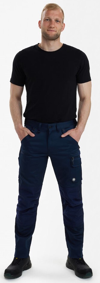 Funktionelle Handwerkerhose aus unserem ENGEL Super Stretch-Material, das verschleißfest und atmungsaktiv ist und mit 56 % recyceltem Polyester hergestellt wird. Beim Design der Hose wurde großen Wert auf hohen Komfort und Bewegungsfreiheit gelegt. Der ergonomisch geformte Kniebereich und der dehnbare Stoff sorgen dafür, dass die Hose in jeder Arbeitssituation bequem zu tragen ist. Die Handwerkerhose hat Knöpfe vorne, an denen bei Bedarf Holstertaschen befestigt werden können. Dies hat den Vorteil, dass man die Holstertaschen einfach und schnell an- und wieder abklicken kann. So müssen z. B. die Holstertaschen nicht geleert werden, wenn die Hose gewaschen werden soll – sie lassen sich vor dem Waschen einfach abnehmen und danach wieder anklicken. Die Hose hat vorne einen praktischen D-Ring für die Befestigung von Dingen wie Ausweisen, sowie viele funktionelle Taschen, z. B. zwei geräumige Schrägtaschen vorne. Zwei Gesäßtaschen. Zwei Beintaschen mit Reißverschluss. Die linke Beintasche hat eine zusätzliche Handytasche. Auf dem linken Oberschenkel befindet sich eine verstärkte Zollstocktasche mit lose hängendem Boden sowie zusätzlichen Unterteilungen. Der Hosenbund ist mit einer praktischen Hammerschlaufe versehen und am rechten Oberschenkel gibt es eine funktionelle Tasche, beispielsweise für ein Lineal oder einen Bleistift. Die Hose bietet 2 Einstellungsmöglichkeiten für das Einsetzen von Knieschutzkissen und eine zusätzliche CORDURA® Verstärkung an den Knien. Für bessere Sichtbarkeit und Sicherheit hat die Hose reflektierende Paspelierungen. Der Arbeitshose hat einen extra breiten Saum unten, der ausgelassen werden kann, wenn zusätzliche Beinlänge erforderlich ist. Um die Hose zu verlängern, muss lediglich eine Naht aufgetrennt werden. Das Hosenbein ist trotzdem noch gesäumt und die Hose kann direkt wieder getragen werden.
