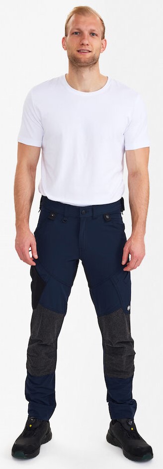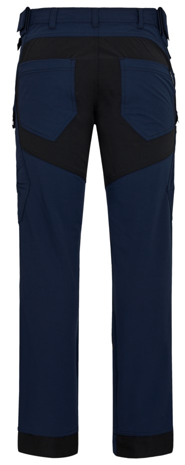 Funktionelle Handwerkerhose mit einer modernen Passform und vielen praktischen Details. Optimale Passform mit z. B. ergonomisch geformtem Kniebereich. Der Stoff mit bequemem 4-Wege-Stretch bietet erstklassige Haltbarkeit und Atmungsaktivität. Das Gewebe hat hervorragende feuchtigkeitsabsorbierende Eigenschaften, trocknet schnell und ist deshalb besonders komfortabel. Knöpfe für das leichte Anbringen von Holstertaschen. D-Ring vorne für die Befestigung von z. B. Ausweisen. Zwei geräumige Schrägtaschen vorn. Zwei Gesäßtaschen. Zwei Schenkeltaschen mit Reißverschluss. Die linke Schenkeltasche hat eine zusätzliche Handytasche. Die rechte Schenkeltasche ist mit einer aufgesetzten Zollstocktasche mit zusätzlichen Unterteilungen versehen. Knieverstärkung/Knietasche mit Klettver- schluss unten und zwei Einstellmöglichkeiten zur Höhenverstellung des Knieschutzkissen. Die Knieverstärkung besteht aus besonders strapazierfähigem Kevlar-Material. Die Hosenbeinabschlüsse sind hinten für besondere Strapazierfähigkeit verstärkt. Breiter Saum unten, der ausgelassen werden kann, wenn zusätzliche Beinlänge erforderlich ist. Um die Hose zu verlängern, muss lediglich eine Naht aufgetrennt werden. Das Hosenbein ist anschließend trotzdem noch umsäumt.