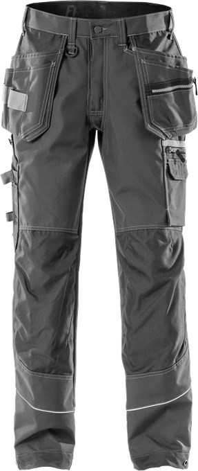 - 2 Vordertaschen / 2 CORDURA®-verstärkte Gesäßtaschen, eine davon mit Patte und Klettverschluss / D-Ring an Gürtelschlaufe / doppelt verstärkte Schrittnaht