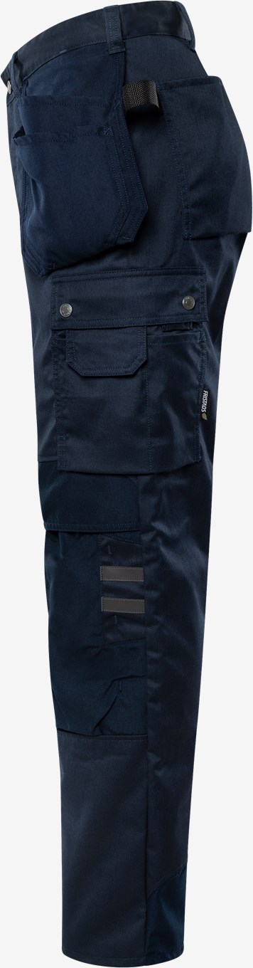 - Rechte Beintasche mit Zollstocktasche, Knopf und Schlaufe für Messerscheide und Stifttasche