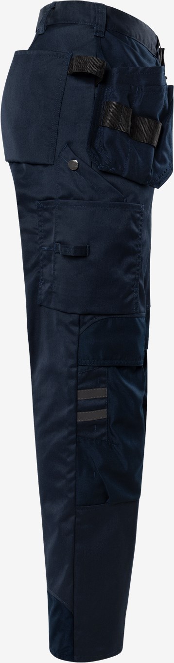 Voll ausgestattete Handwerkerhose aus recyceltem Polyester und Baumwolle. Das strapazierfähige Material in Kombination mit mechanischem Stretch sorgt für eine komfortable Bewegungsfreiheit. Mit EPD (Environmental Product Declaration).