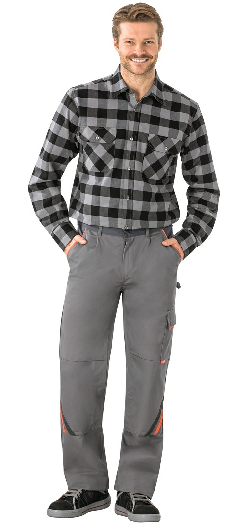Dieser Artikel ist in Verbindung mit einem PLANAM Kniepolster (Art.-Nummer 9901027) als Knieschutz nach EN 14404 Typ 2, Stufe 1 zertifiziert. 2 eingesetzte Beuteltaschen, 2 aufgesetzte Knietaschen mit farblichen Applikationen, doppelte Maßstabtasche, links Oberschenkeltasche mit Patte und Klettverschluss, Handytasche, Gummizug im Bund, 2 Gesäßtaschen mit Patten, Reißverschluss im Hosenschlitz, Tascheneingriffe und Taschenpatten mit farblichen Biesen abgesetzt.