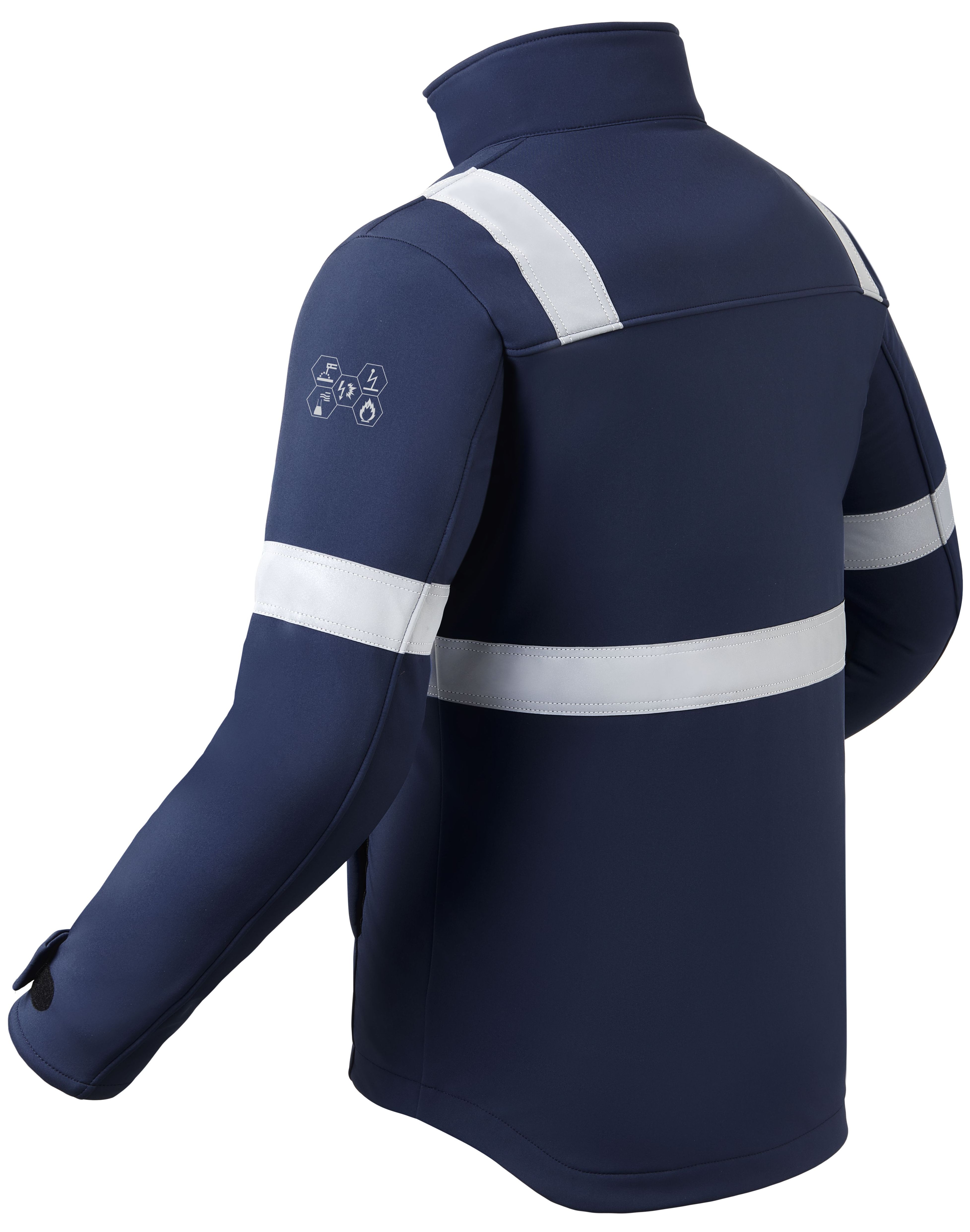 Softshell aus der HAVEP® 5safety-Kollektion. Diese flammhemmende und antistatische Softshell ist aus recyceltem Polyester/Kohle hergestellt.