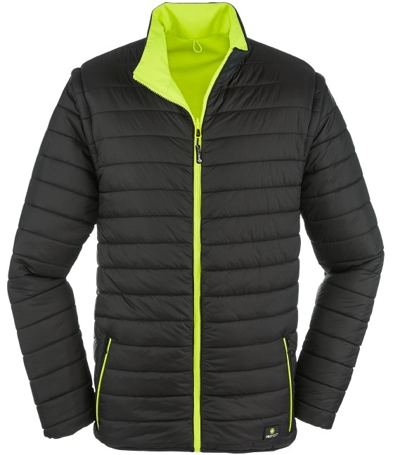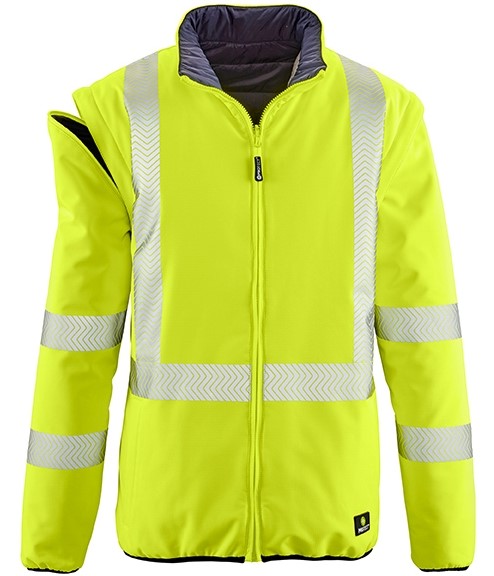 Extrem wandelbar. Die Wendejacke RENO bietet einerseits alles, was eine Warnschutzjacke auszeichnet, andererseits eine schwarze Variante in einem unauffälligen, modernen Design. Zudem können die Ärmel abgezippt und die Jacke auch als Weste getragen werden. Mehr Flexibilität geht nicht! Segmentierte, auflaminierte Reflexstreifen laufen um Körper und Ärmel sowie über die Schulterpartien (Hosenträgerreflexstreifen). Eine innovative Funktionsmembran garantiert eine hohe Wasserdichtigkeit des Gewebes und sehr gute Atmungsaktivität. Das Ripstop-Gewebe ist robust, strapazierfähig und damit besonders langlebig. RENO ist zusätzlich mit allen 4PROTECT® Warn-/Wetterschutzjacken kombinierbar. Wie man es auch dreht und wendet: Die Jacke ist und bleibt ein hochfunktionales Multitalent.