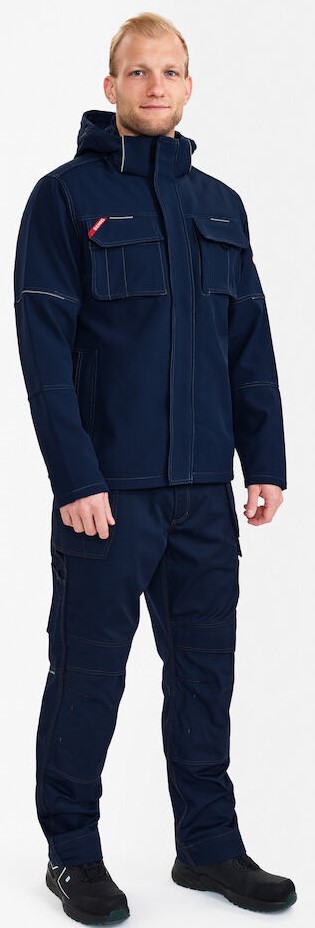 Einfarbige Pilotjacke mit Kontraststeppnähten. Reflektierende Paspeln. Verdeckter Reißverschluss und Druckknöpfe vorne. Nylon-Steppfutter und weiches Fleece in Kragen. Zwei Seitentaschen. Zwei Brusttaschen mit Patte und verdeckten Druckknöpfen. Die rechte Tasche mit extra Tasche mit Fach für Werkzeug sowie Schlaufe mit D-Ring. Paspeltasche mit Reißverschluss, Handyfach mit Patte und Klettverschluss, zwei Fächer für Stifte und Werkzeugschlaufe. Eine verdeckte Napoleontasche mit Reißverschluss auf der linken Brust. Eine geräumige Innentasche mit Reißverschluss. Eine kleine Innentasche und ein weiteres Fach fürs Handy, beides mit Patte und Klettverschluss. Reißverschluss im Futter (Möglichkeit für Aufdruck). Kordelstopper unten am Jackensaum. Verstellbare Ärmelbündchen mit Klettverschluss und Windschutz. Abnehmbare Kapuze mit Reißverschluss, Kordelstopper und verstellbarer Klettverschluss.