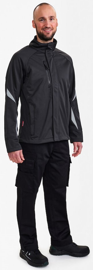 Dehnbare und funktionelle Softshelljacke, wind- und wasserabweisend. Der dehnbare Stoff sorgt für optimale Bewegungsfreiheit und Komfort. Die Softshelljacke hat geformte Ärmel für maximale Bewegungsfreiheit. Verdeckter Reißverschluss vorne mit YKK High Temperature Nylon-Druckknöpfen. Zwei Seitentaschen sowie Brusttasche mit Reißverschluss. Große Innentaschen mit Klettverschluss. Die Jacke hat einen elastischen Windschutz an den Ärmeln sowie einen verstellbaren Bund. Reflektierende Details vorne und hinten für bessere Sichtbarkeit. Die Softshelljacke ermöglicht hinten im Nacken das einfache Anbringen eines Namensschilds und bietet viel Platz für ein Firmenlogo. Geeignet für die Industriewäsche.