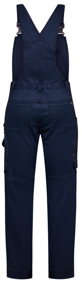 Funktionelle Latzhose aus unserem ENGEL Super Stretch-Material, das verschleißfest und atmungsaktiv ist und mit 56 % recyceltem Polyester hergestellt wird. Beim Design wurde großer Wert auf hohen Komfort und Bewegungsfreiheit gelegt. Die ergonomisch geformte Kniepartie und der dehnbare Stoff sorgen zusammen mit der hohen Rückenpartie, den Rippeneinsätzen an den Seiten und den verstellbaren Hosenträgern dafür, dass die Latzhose in jeder Arbeitssituation bequem zu tragen ist. Das Praktische an Latzhosen ist, dass sie nicht in der Mitte auseinanderklaffen können, wenn man z.B. eine Leiter hinauf- und hinuntersteigt oder sich mehrmals am Tag ins Auto setzt und wieder aussteigt. Die Latzhose hat auf der Vorderseite Knöpfe zum Anbringen und Abnehmen von Holstertaschen, und ist damit die richtige Wahl, wenn man Holstertaschen wünscht. Dies hat den Vorteil, dass man die Holstertaschen einfach und schnell an- und wieder abklicken kann. So müssen z. B. die Holstertaschen nicht geleert werden, wenn die Latzhose gewaschen werden soll – sie lassen sich vor dem Waschen einfach abnehmen und danach wieder befestigen. Die Latzhose hat vorne einen praktischen D-Ring für die Befestigung von z. B. Ausweisen sowie viele funktionelle Taschen, unter anderem zwei geräumige Schrägtaschen vorne. Zwei Gesäßtaschen. Zwei Beintaschen mit Reißverschluss. Die linke Beintasche hat eine zusätzliche Handytasche. Auf dem linken Oberschenkel befindet sich eine verstärkte Zollstocktasche mit lose hängendem Boden sowie zusätzlichen Unterteilungen. Der Hosenbund ist mit einer funktionellen Hammerschlaufe versehen und am rechten Oberschenkel gibt es eine praktische Tasche, beispielsweise für ein Lineal oder einen Bleistift. Die Latzhose hat zwei Einstellmöglichkeiten für das Einsetzen von Knieschutzkissen und eine zusätzliche Verstärkung an den Knien, die für mehr Strapazierfähigkeit sorgt. Für bessere Sichtbarkeit und Sicherheit hat die Latzhose smarte, reflektierende Paspelierungen. Die Latzhose hat einen besonders breiten Saum unten, der einfach ausgelassen werden kann, wenn zusätzliche Beinlänge erforderlich ist. Um die Hose zu verlängern, muss lediglich eine Naht aufgetrennt werden. Das Hosenbein ist trotzdem noch gesäumt und die Hose kann direkt wieder getragen werden.
