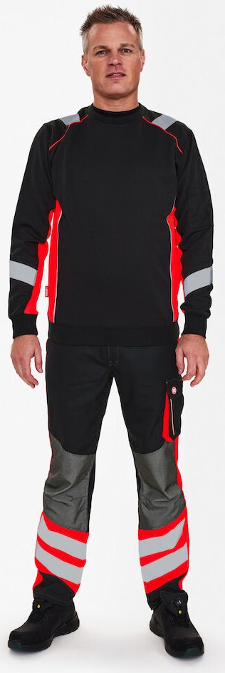 Bequemes und leichtes Sweatshirt mit Strickbündchen an Kragen, Bund und Ärmeln. Am linken Ärmel ist eine Tasche mit Einschub für z. B. Stifte. Reflexdetails für erhöhte Sichtbarkeit.