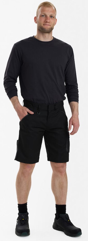 Funktionelle Arbeitsshorts mit vielen Details. Optimale Passform, mit Panel an der Innennaht im Schritt für mehr Bequemlichkeit. Zwei geräumige, schräg sitzende Einschubtaschen vorne. Schlaufe mit D-Ring (vorne) zur Befestigung einer ID-Karte. Zwei geräumige Gesäßtaschen, die rechte mit Patte und Klettverschluss. Sehr geräumige Schenkeltasche mit Reißverschlusstasche, z. B. für das Handy, sowie zusätzliche kleine Tasche. Zollstocktasche mit zusätzlichen Fächern. Die Zollstocktasche hat einen freihängenden Boden für mehr Bewegungsfreiheit. Für Industriewäsche geeignet.