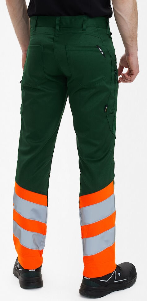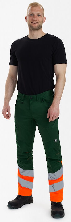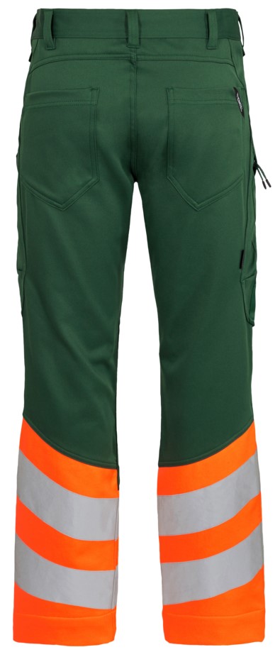 Dehnbare, funktionelle und fluoreszierende Hose im modernen Design. Optimale Passform mit u. a. ergonomisch geformtem Kniebereich. Der dehnbare Stoff sorgt für optimale Bewegungsfreiheit und Komfort. D-Ring vorne für die Befestigung von z. B. Ausweisen. Zwei geräumige Schrägtaschen vorne. Zwei Gesäßtaschen. Zwei Schenkeltaschen mit Reißverschluss. Die linke Schenkeltasche hat eine zusätzliche Handytasche. Die rechte Schenkeltasche hat eine aufgesetzte Zollstocktasche mit zusätzlichen Unterteilungen sowie eine Messertasche, beide Taschen sind verstärkt. Knieverstärkung/Knietasche mit Klettverschluss unten und besteht aus CORDURA®-Material. Reflexstreifen am Unterschenkel. Breiter Saum unten, der ausgelassen werden kann, wenn zusätzliche Beinlänge erforderlich ist. Um die Hose zu verlängern, muss lediglich eine Naht aufgetrennt werden. Das Hosenbein ist trotzdem noch gesäumt. Bekleidungsklasse 1. Nach 50 mal Waschen getestet.