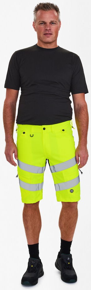 Dehnbare, funktionelle und fluoreszierende Shorts im modernen Design. Optimale Passform. Der dehnbare Stoff sorgt für optimale Bewegungsfreiheit und Komfort. D-Ring vorne für die Befestigung von z. B. Ausweisen. Zwei geräumige Schrägtaschen vorne. Zwei Gesäßtaschen. Zwei Schenkeltaschen mit Reißverschluss. Die linke Schenkeltasche hat eine zusätzliche Handytasche. Die rechte Schenkeltasche hat eine aufgesetzte verstärkte Zollstocktasche mit zusätzlichen Unterteilungen. Bekleidungsklasse 1. Nach 50 mal Waschen getestet.