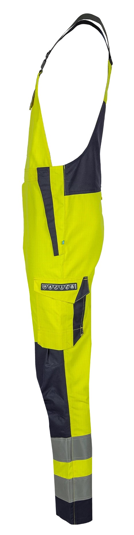 Diese Warnschutzlatzhose ist aus einem inhärent flammhemmendem Öko-Gewebe gefertigt, das zuverlässigen Schutz und Komfort bietet. Die moderne Passform und die vorgeformten Knie garantieren ein professionelles Aussehen und hervorragende Bewegungsfreiheit. Mit den verstellbaren, elastischen Hosenträgern und den Druckknöpfen an den Seiten können Sie sie perfekt an Ihren Körper anpassen.