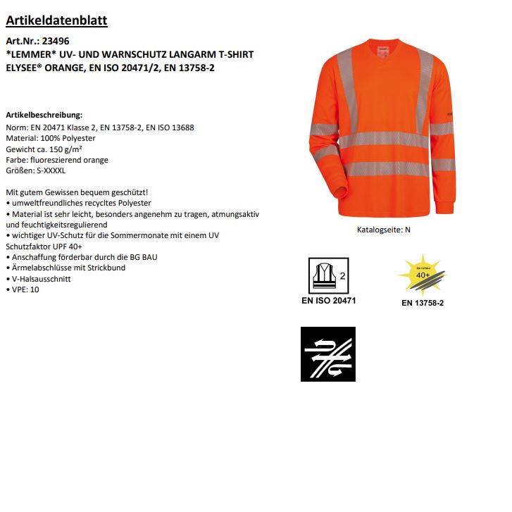 Produktinformationen "elysee 23496 LEMMER UV- und Warnschutz Langarm T-Shirt Orange"