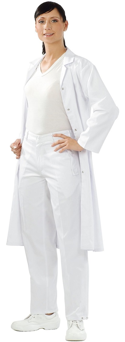 Der Food Berufsmantel für Damen steht für hygienischen Schutz, den Sie schnell anziehen können. Weitere Vorteile sind die hohe Strapazierfähigkeit und der hohe Tragekomfort. Angelehnt an die Empfehlungen der HACCP und der DIN 10524 für Lebensmittelhygiene. Langarm, Kragen mit Revers, verdeckte Druckknopfleiste, 2 Seitentaschen innen, mit Druckknopf verstellbare Ärmelbündchen, Rückengurt.
