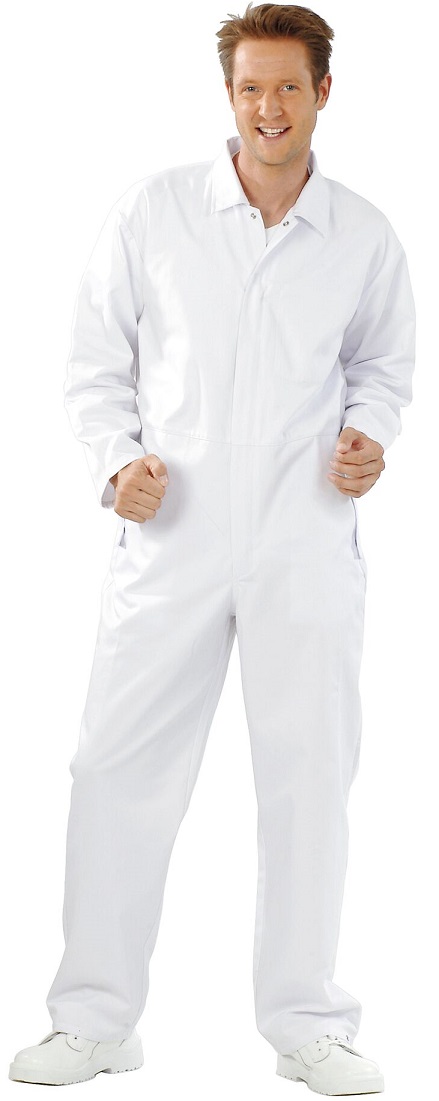 Dieser Einteiler ist die praktische Alternative zu mehreren Food Artikeln: Schnell angezogen und alles dabei. Angelehnt an die Empfehlungen der HACCP und der DIN 10524 für Lebensmittelhygiene. Verdeckter 2-Wege-Reißverschluss, 1 Innentasche rechts, 1 Innentasche und Handytasche links, mit Druckknopf verstellbare Ärmelbündchen und Fußweiten, 2 eingesetzte Beuteltaschen, mit Patten und Druckknöpfen zu verschließen, Gummizug im Rücken.