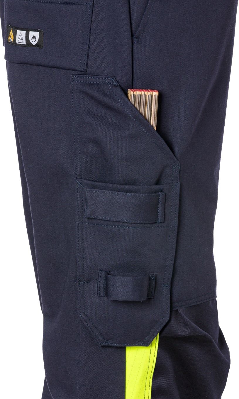 Flammschutzhose für Damen aus strapazierfähigem und bequemem flammhemmend behandeltem Material. Handwerker-Modell mit Knietaschen aus flammhemmendem CORDURA®. Industriewäsche geeignet.