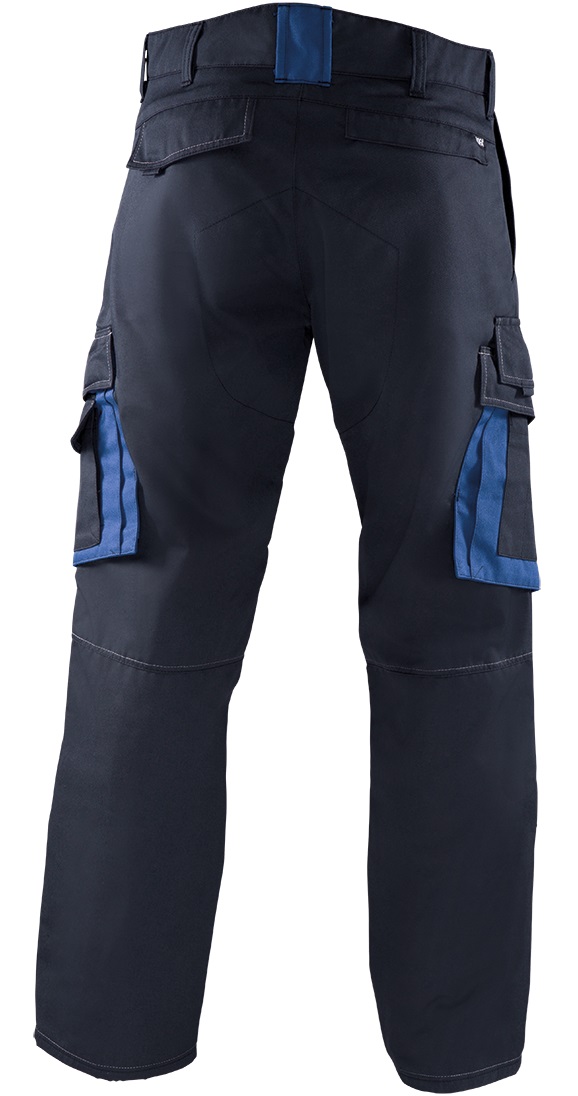 Ausführung: Bund mit Gürtelschlaufen und Knopf, Schlitz mit Reißverschluss, 2 Seitentaschen, links Cargotasche mit aufgesetzter Handytasche jeweils mit Patte und Klett, rechts Cargotasche mit integrierter Zollstocktasche jeweils mit Patte und Klett, zusätzlich aufgesetzte Tasche mit Unterteilungen, Knietaschen, 2 Gesäßtaschen, Gesäßtasche links mit Patte und Klett, rechts mit Reißverschluss, Reflexapplikationen an den Beinen, komplett zweilagig
