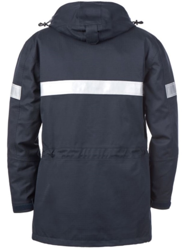 - schwer entflammbare 3M Scotchlite™ 8935-Reflexstreifen auf Front und Rücken, sowie Ärmel