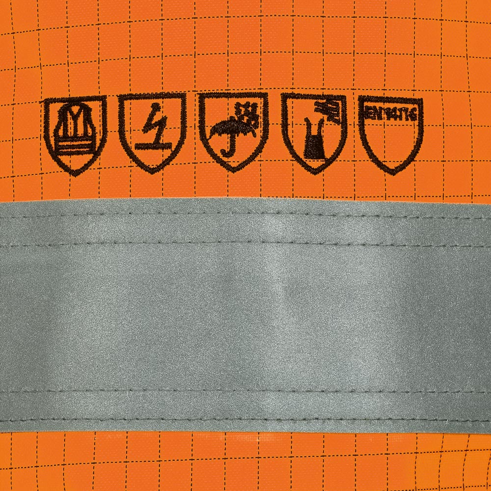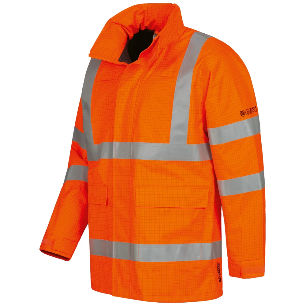 - Die Jacke ist von außen als Multinorm- Schutzbekleidung erkennbar durch das Multinorm-Emblem auf dem linken Oberarm