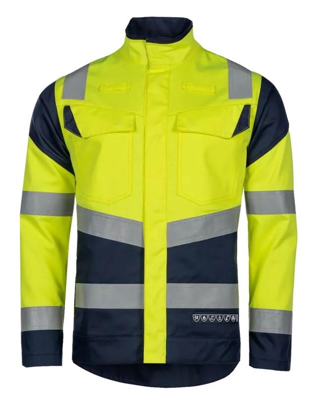 Diese Signaljacke mit ARC-Schutz aus der Multinorm UP-Kollektion hat ein hoch atmungsaktives und leichtes Gewebe (260 g/m²) mit hervorragenden feuchtigkeitsregulierenden Eigenschaften. Die aktualisierte UP-Passform an Armen und Taille und der etwas kürzere, verlängerte Rücken kreieren einen UP-Look, der bequem ist und gleichzeitig den erforderlichen Schutz in risikoreichen Situationen bietet.