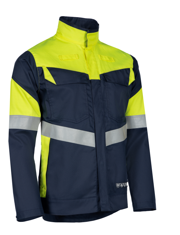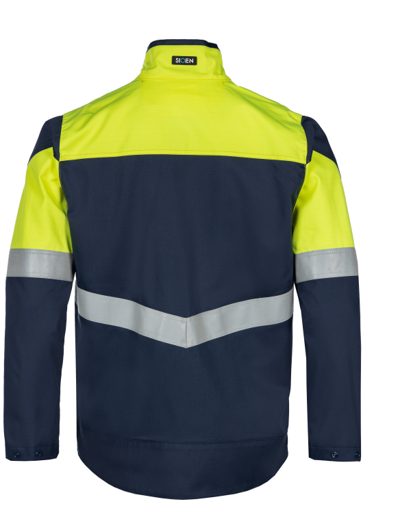 Mit ihrem modernen Design, einer taillierten Passform und einem auffälligen Farbkontrast Marineblau/Leuchtgelb sieht diese Arbeitsjacke nicht nur gut aus, sondern bietet auch zertifizierten EN 17353-Schutz bei Tageslicht, Dämmerung und in der Nacht. Sie ist die perfekte Kombination aus Umweltfreundlichkeit, Komfort, Stil und hochwertigem Multinorm-Schutz. | Die Norwan Arbeitsjacke ist das UP-date von der Jasper (086V).