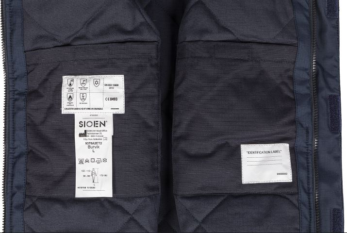 Gewebe: Siopor® Excell: 3-lagiges Gewebe: Dobby Ripstop Polyester-Gewebe (& AST) + atmungsaktive FR PU-Beschichtung + inhärentes FR-Gewirk; ± 280 g/m²