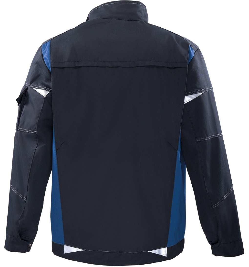Ausführung: Variabler Bikerkragen als Stehkragen oder Umlegekragen, vordere Mitte mit Panik-Reißverschluss, vordere Leiste mit Druckknöpfen, 2 Brusttaschen mit Patte und Klett, rechts Armtasche mit Patte und Klett, Ärmelabschluss weitenverstellbar durch Druckknöpfe, 2 Seitentaschen mit Reißverschluss, Bewegungsfalten im Rückenteil, 1 Brustinnentaschen links, Reflexapplikationen an Rumpf und Ärmeln, komplett zweilagig