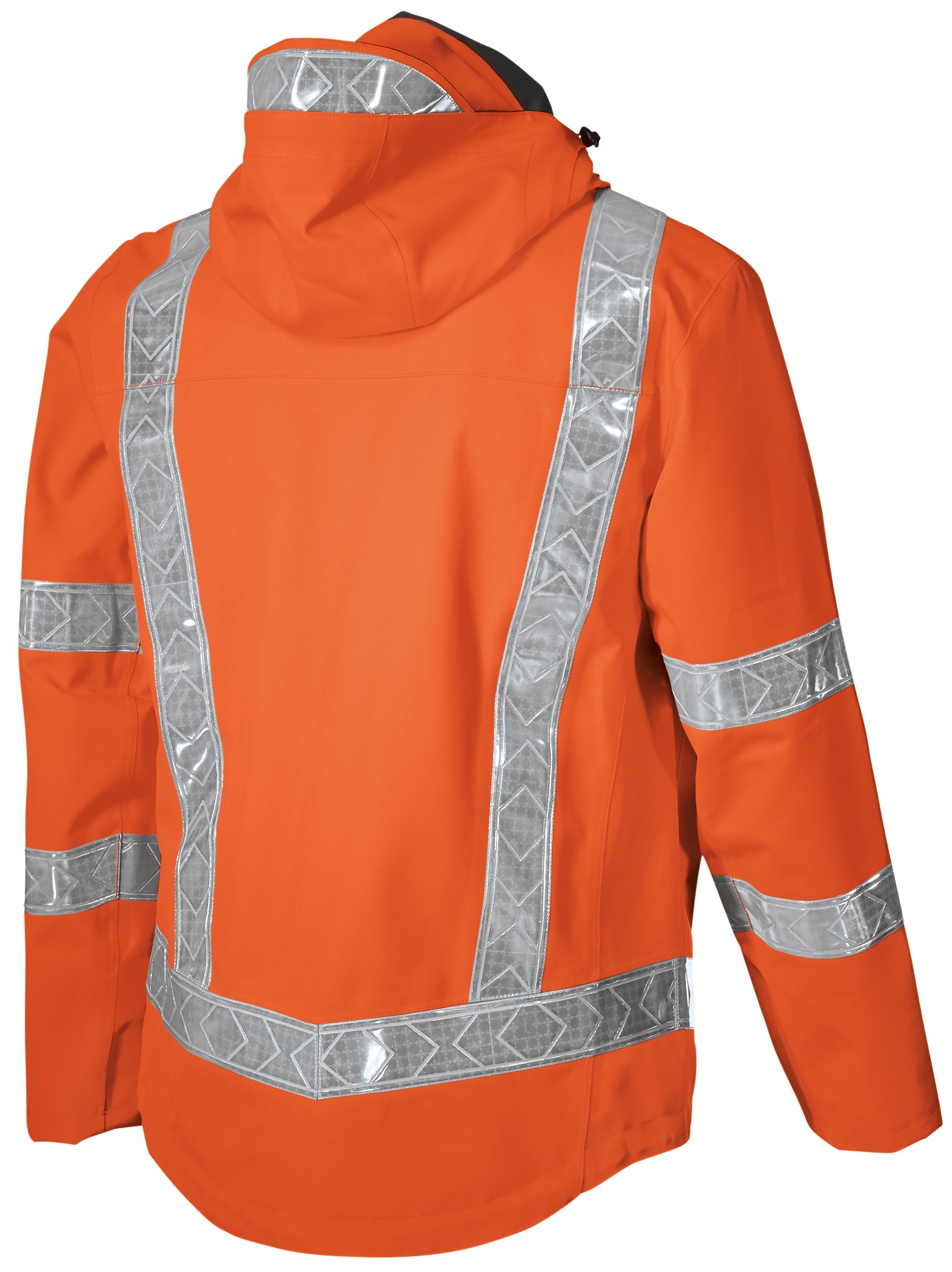 - Normen: EN ISO 20471 Warnschutz Klasse 3, EN 343 Wetterschutz Kl. 3, atmungsaktiv Kl .3, EN 14058 (1.3.X) in Verbindung mit Fleecejacke 2025-628