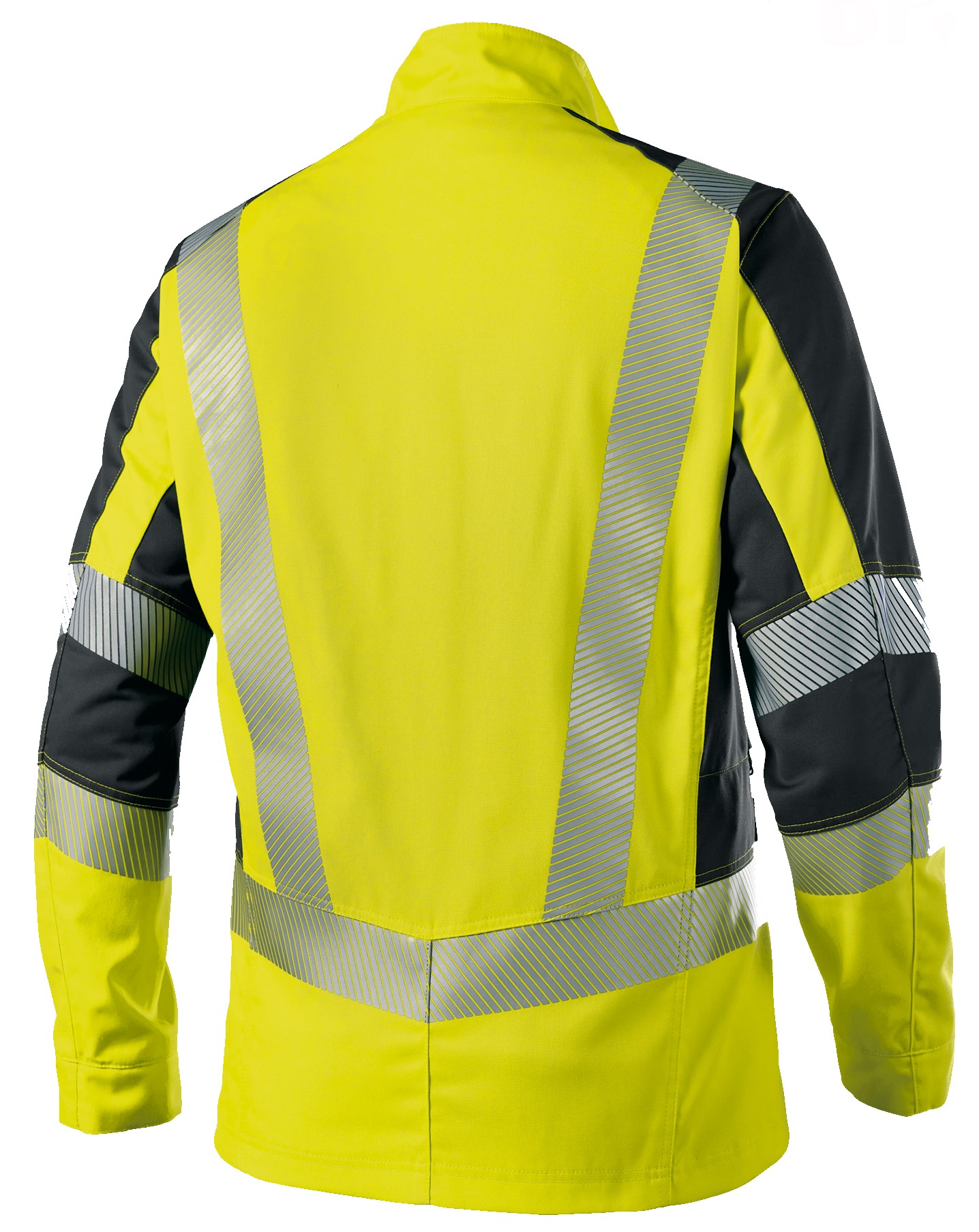- je 2 Reflexstreifen auf dem Ärmel, 1 umlaufender Reflexstreifen oberhalb des Saumes, je 2 umlaufende vertikale Reflexstreifen vorne und hinten