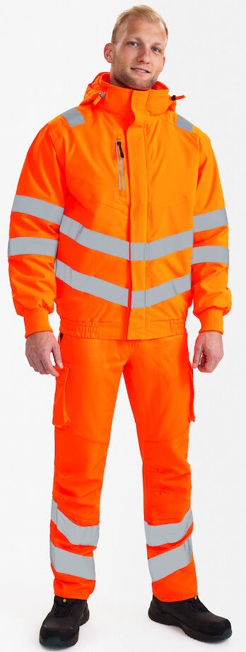 Fluoreszierende, atmungsaktive sowie wasser- und winddichte Pilotjacke mit verschweißten Nähten und im modernen Design. Doppelte Knopfleiste mit Reißverschluss sowie Klettverschluss vorne. Zwei geräumige Seitentaschen sowie Brusttasche mit Reißverschluss. Zwei Innentaschen, eine davon mit Reißverschluss. Abnehmbare, verstellbare Kapuze mit ausreichend Platz für den Arbeitshelm. Elastischer Saum unten und Rippstrick am Ärmelabschluss. Reißverschluss im Futter, der sich für Aufdruck/Stickerei eignet. Reflexstreifen über die Schulterpartie hinweg sowie rund um Ärmel und Körper. Bekleidungsklasse 3. Nach 50 mal Waschen getestet.