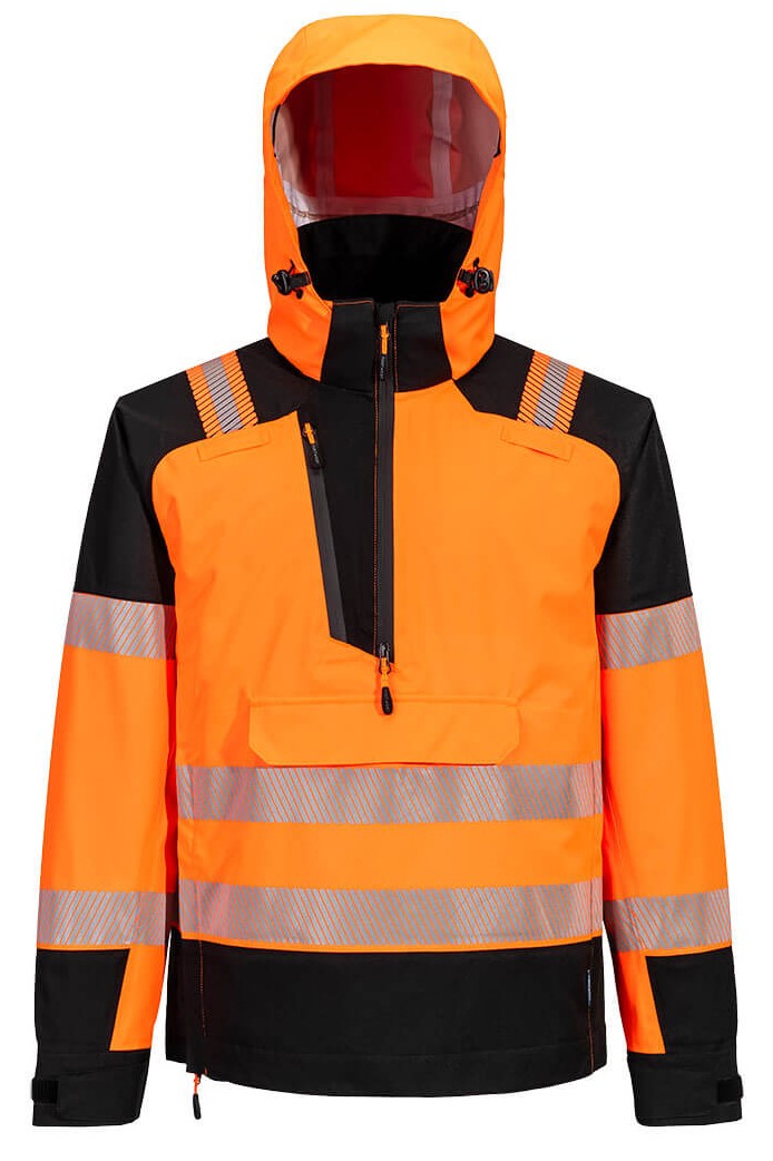 Die PW3-Überkopfjacke mit hoher Sichtbarkeit wurde im Hinblick auf Tragekomfort und Schutz entwickelt. Das Portwest Extreme Stretch Soft Touch (3L) ist wasserdicht, winddicht und atmungsaktiv und hält den Träger unter allen Bedingungen trocken. Die nach EN343 Klasse 4:4 zertifizierte Jacke verfügt über einen 2-Wege Reißverschluss in der Mitte, zusätzliche Belüftungseinsätze in allen Taschen für zusätzliche Atmungsaktivität, einen langen Reißverschluss, eine abnehmbare helmtaugliche Kapuze mit geformtem Schirm, verstellbare Ärmelbündchen und eine verlängerte Rückenlänge für zusätzlichen Schmutzschutz. Ein Muss für die PW3 Kollektion.