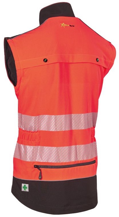 Die Kevlarbesätze an Schultern und Ellenbogen geben Stabilität an den stark beanspruchten Stellen. Den optimalen Bewegungskomfort, geprägt durch Leichtigkeit und Anpassungsfähigkeit, garantiert der verarbeitete Stretch-Stoff. Am Bundbereich der Jacke haben wir einen schmutz- und wasserabweisenden, reißfesten und zugleich elastischen Stoff verwendet. Das Innenfutter aus Coolmax-Gewebe ermöglicht optimale Atmungsaktivität. Die Vario HIVIS Funktionsjacke erreicht als Jacke die DIN EN20471 KLasse 2 und als Weste die Klasse 1.