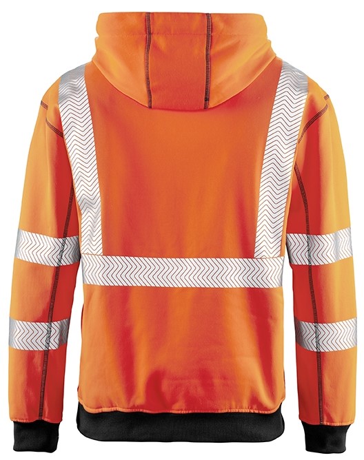 Hoodie aus trageangenehmen Mischgewebe. Die Baumwollfasern liegen direkt auf der Haut und sorgen so für ein trockenes und weiches Gefühl. Die robuste und farbintensive Aussenseite ist aus recyceltem Polyester. Somit sind problemlos 25 Wäschen möglich, ohne dass es zu einer Beeinträchtigung der Warnschutzwirkung kommt. Gr. M-6XL = Warnschutzklasse 3. Gr. XS+S= Warnschutzklasse 2. Die segmentierten Reflexstreifen sind direkt aufgeprinted, gewähren eine bessere Atmungsaktivität als aufgenähte Reflex-Folien und sind zudem mit dem Oberstoff zusammen elastisch.