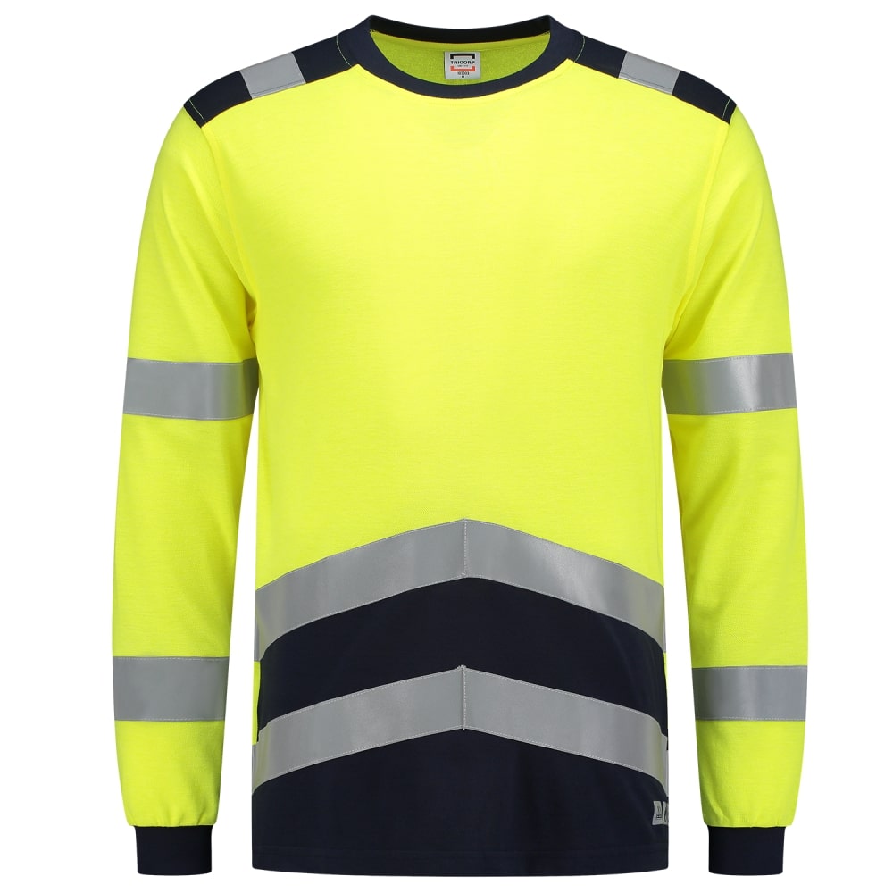 Das T-Shirt Mulitnorm Bicolor aus der Tricorp Safety-Kollektion besteht aus 60% Modacryl, 39% gekämmter Baumwolle und 1% Sonstige Fasern. Gewicht: 200 g/m2. Die Zertifizierung nach EN ISO 20471 garantiert beste Sichtbarkeit bei Tag, Dämmerung und Nacht. Dieses Produkt ist ebenfalls nach EN ISO 11612 (Schutz gegen Hitze und Flammen) und EN 1149 (Elektrostatische Eigenschaften) zertifiziert.