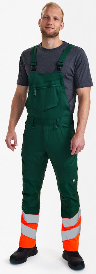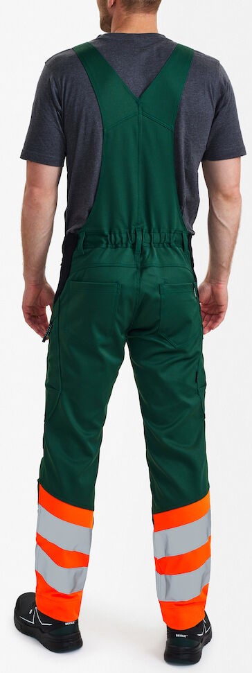 Dehnbare und funktionelle fluoreszierende Latzhose im modernen Design. Der dehnbare Stoff sorgt für optimale Bewegungsfreiheit und Komfort. Optimale Passform mit u. a. ergonomisch geformtem Kniebereich. Hoch geschnittenes Rückenteil und Rippstrickeinsätze an den Seiten sorgen für optimale Passform und Tragekomfort. Verstellbare Träger. Latztasche mit Reißverschluss. Latzinnentasche mit Reißverschluss. Zwei Gesäßtaschen. Zwei Schenkeltaschen mit Reißverschluss. Die linke Schenkeltasche hat eine zusätzliche Handytasche. Die rechte Schenkeltasche hat eine aufgesetzte Zollstocktasche mit zusätzlichen Unterteilungen. D-Ring an der Latztasche für die Befestigung von z. B. Ausweisen. Knieverstärkung/Knietasche mit Klettverschluss unten und besteht aus CORDURA®-Material. Breiter Saum unten, der ausgelassen werden kann, wenn zusätzliche Beinlänge erforderlich ist. Um die Hose zu verlängern, muss lediglich eine Naht aufgetrennt werden. Das Hosenbein ist trotzdem noch gesäumt. Bekleidungsklasse 2. Nach 50 mal Waschen getestet
