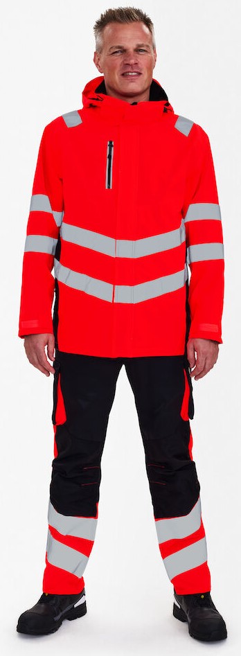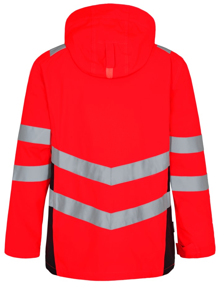 Fluoreszierender, atmungsaktiver sowie wasser- und winddichter Shellparka mit modernem Schnitt und verschweißten Nähten. Der Parka hat einen hohen Kragen, doppelte Knopfleiste mit Reißverschluss sowie Klettverschluss vorne. Kombinierbar mit den Modellen 1192-236, 1159-158 und 5159-158, die alle Zip-in-Details haben. Zwei geräumige Seitentaschen und Brusttasche mit Reißverschluss sowie große Innentaschen mit Klettverschluss. Abnehmbare, verstellbare Kapuze mit ausreichend Platz für den Arbeitshelm. Verstellbare Manschetten. Reißverschluss im Futter, der sich für Aufdruck eignet. Reflexstreifen über der Schulterpartie sowie rund um Ärmel und Taille. Bekleidungsklasse 3. Getestet nach 50 Wäschen.