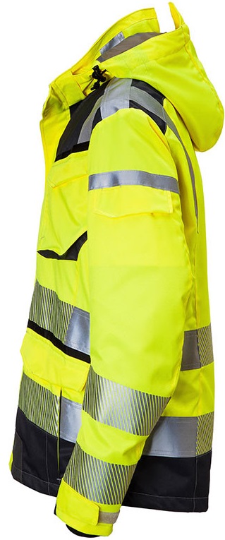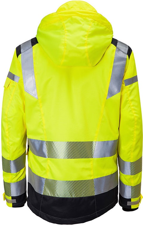 - Reflex-Elemente: Reflexoptik in Body Language, segmentiertes und durchgehendes Reflexband kombiniert, 2 Reflexstreifen an Rumpf und Ärmel umlaufend (7cm breit), zusätzliche Reflexstreifen über Schulter sowie an Brust und oberem Rücken (5cm breit) und am O