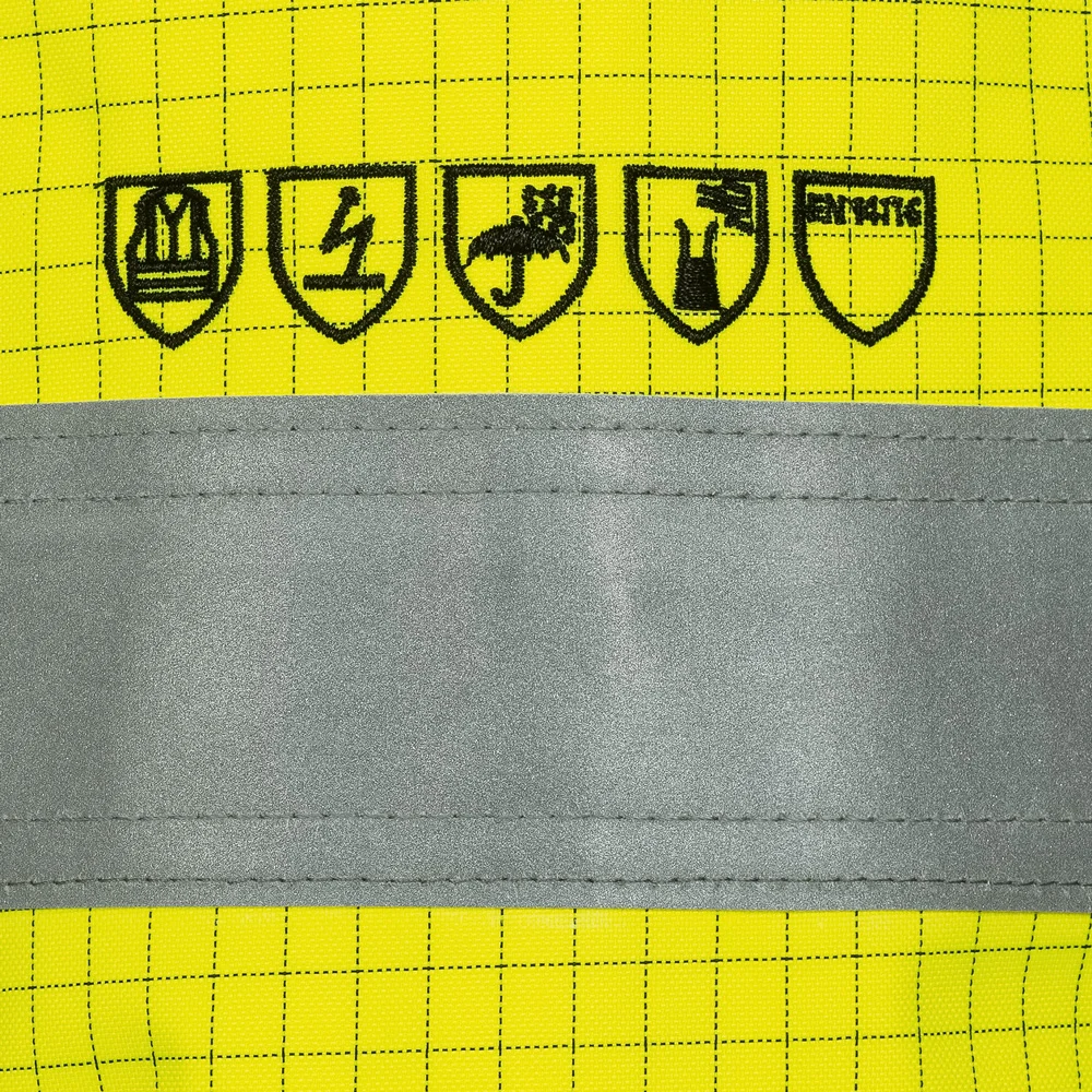 - Die Jacke ist von außen als Multinorm- Schutzbekleidung erkennbar durch das Multinorm-Emblem auf dem linken Oberarm
