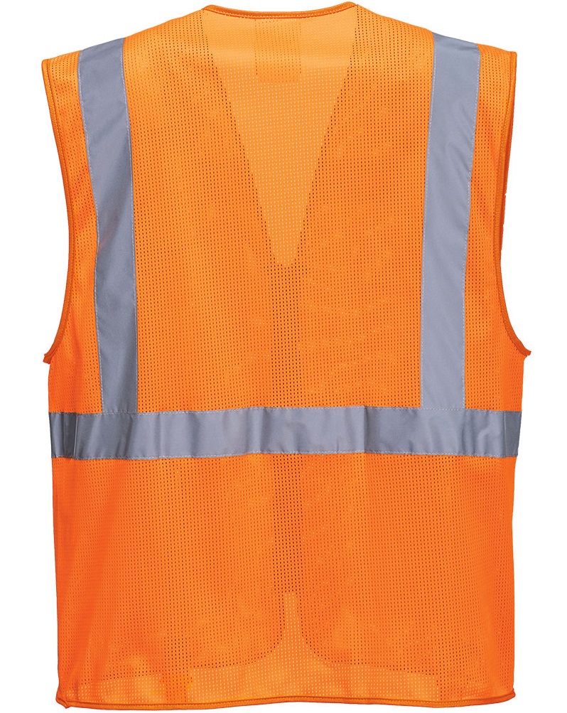 Die fortschrittliche MeshAir-Technologie sorgt für einen hervorragende Atmungsaktivität und hält den Träger jederzeit kühl. MeshAir Gewebe ist konform mit EN ISO 20471. Diese Weste schließt klassische Executivmerkmale einschließlich mehreren Taschen, Identifikation-Halter, Mikrofonschlaufe und Reißverschluss vor für einfaches Anziehen ein.
