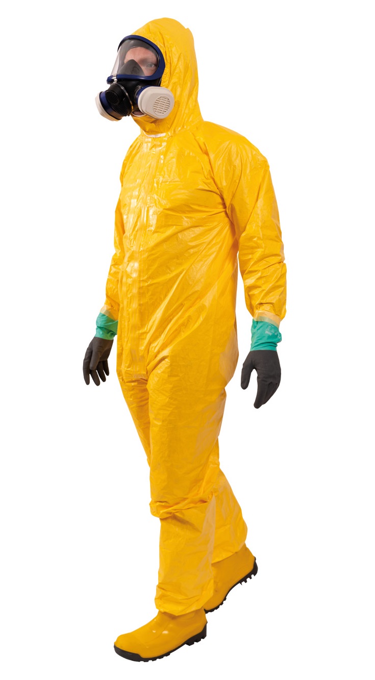 Der Anzug wird aus Tychem C hergestellt, selbiges ist ein kunststoffbeschichtetes und hochleistungsfähiges Material mit hoher Robustheit. Es bietet Schutz vor vielen anorganischen Chemikalien und schützt ebenso vor Kontamination durch radioaktive Partikel. Antistatisch ausgerüstet ist es ebenfalls.Anwendungsbeispiele: Entsorgung von Altlasten, Dekontaminierungsarbeiten, Umgang mit festen und flüssigen Gefahrstoffen, Inspektionsarbeiten, Revisionsarbeiten, Bauarbeiten, Industrieanstrich, Tank-Kanalreinigungen, Landwirtschaft/Pflanzenschutz, Lebensmittelindustrie, Pharmaindustrie, Harzbeschichtungen, Nuklearbereich, Lacke und Farben, Feuerwehr und Rettungskräfte