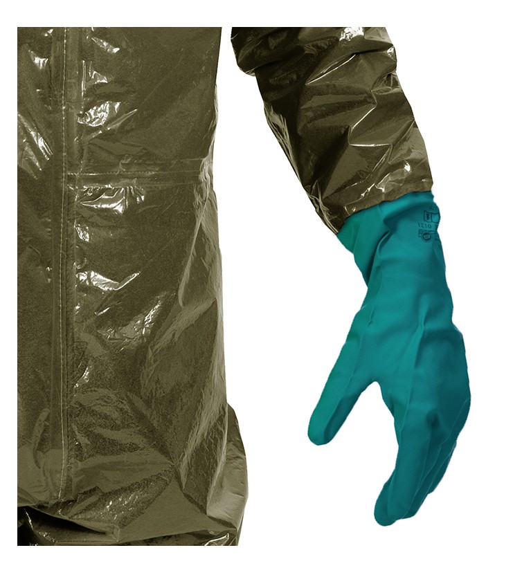 Fest angearbeitete silikonfreie KCL Camatril 730 Handschuhe aus Nitril runden den Anzug ab. Der Handschuhe bietet ihnen eine gute Abrieb-, Stich- und Schnittfestigkeit, ist beständig gegen Säuren, Laugen, langkettige Alkohole und aliphatische und alicyclische Kohlenwasserstoffe.