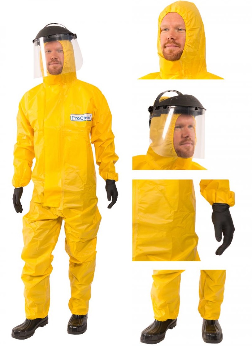 Der ProChem® I wird vornehmlich in der Industrie- und Tankreinigung, bei Inspektionsarbeiten und bei Einsätzen von Feuerwehren und Rettungskräften verwendet. Gummizüge an Ärmeln, Beinen und Kapuze sowie ein Taillengummi sorgen für eine optimale Passform und der großzügig geschnittene Schrittbereich für optimale Bewegungsfreiheit. Die ergonomische Kapuze und die erhöhte doppelte Abdeckblende mit Klettverschluss über dem Reißverschluss bis zum Kinn bieten zusätzlichen Schutz. Elastische Daumenschlaufen verhindern das Hochrutschen der Ärmel bei Überkopfarbeiten.