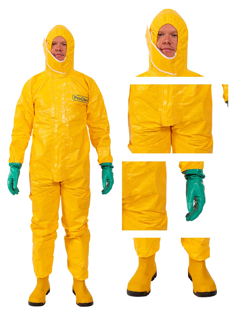 Der ProChem® I wird vornehmlich in der Industrie- und Tankreinigung, bei Inspektionsarbeiten und bei Einsätzen von Feuerwehren und Rettungskräften verwendet. Gummizüge an Ärmeln, Beinen und Kapuze sowie ein Taillengummi sorgen für eine optimale Passform und der großzügig geschnittene Schrittbereich für optimale Bewegungsfreiheit. Die ergonomische Kapuze und die erhöhte doppelte Abdeckblende mit Klettverschluss über dem Reißverschluss bis zum Kinn bieten zusätzlichen Schutz. Elastische Daumenschlaufen verhindern das Hochrutschen der Ärmel bei Überkopfarbeiten.