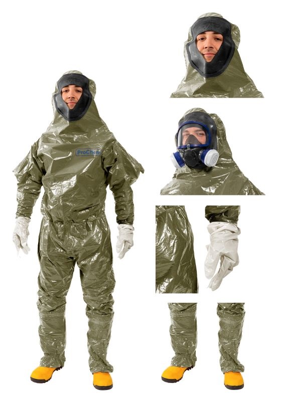 Der ProChem® II wird vornehmlich bei Tank- und Kanalreinigungen, im Umgang mit festen und flüssigen Gefahrstoffen oder bei Dekontaminierungsarbeiten und Gefahrguteinsätzen verwendet. Gummizüge an Ärmeln und Beinen sowie ein Taillengummi sorgen für eine optimale Passform und der großzügig geschnittene Schrittbereich für optimale Bewegungsfreiheit. Der waagerechte Einstieg im Rücken mit geschützter Wickelblende und Klettverschluss bietet einen dichten Verschluss. Eine Gesichtsmanschette aus Butyl dichtet die Außenseite von Vollschutzmasken optimal ab.