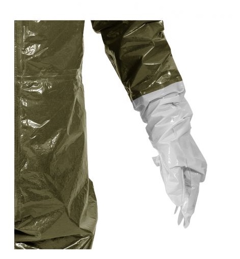 Fest angearbeitete ANSELL Barrier Laminathandschuh mit Schutzstulpe runden den Anzug ab und bieten eine anatomische Passform, sowie Schutz vor einem äußerst breiten Spektrum von Chemikalien und Flüssigkeiten.