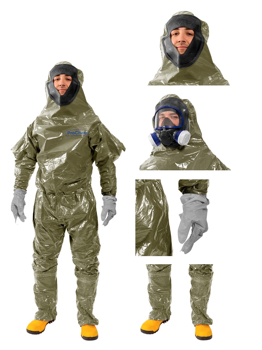 Der ProChem® II wird vornehmlich bei Tank- und Kanalreinigungen, im Umgang mit festen und flüssigen Gefahrstoffen oder bei Dekontaminierungsarbeiten und Gefahrguteinsätzen verwendet. Gummizüge an Ärmeln und Beinen sowie ein Taillengummi sorgen für eine optimale Passform und der großzügig geschnittene Schrittbereich für optimale Bewegungsfreiheit. Der waagerechte Einstieg im Rücken mit geschützter Wickelblende und Klettverschluss bietet einen dichten Verschluss. Eine Gesichtsmanschette aus Butyl dichtet die Außenseite von Vollschutzmasken optimal ab.