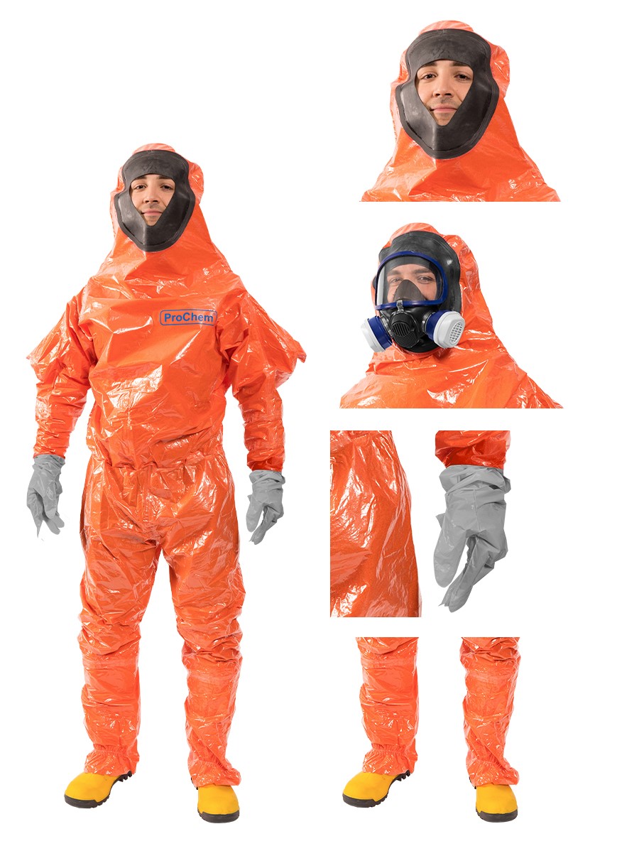 Der ProChem® II wird vornehmlich bei Tank- und Kanalreinigungen, im Umgang mit festen und flüssigen Gefahrstoffen oder bei Dekontaminierungsarbeiten und Gefahrguteinsätzen verwendet. Gummizüge an Ärmeln und Beinen sowie ein Taillengummi sorgen für eine optimale Passform und der großzügig geschnittene Schrittbereich für optimale Bewegungsfreiheit. Der waagerechte Einstieg im Rücken mit geschützter Wickelblende und Klettverschluss bietet einen dichten Verschluss. Eine Gesichtsmanschette aus Butyl dichtet die Außenseite von Vollschutzmasken optimal ab.