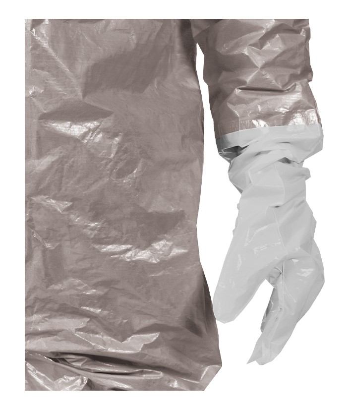 Fest angearbeitete RESPIREX Kemblok Laminathandschuh, welche gut als Innenhandschuh unter robusten Handschuhen getragen werden können und silikon- und latexfrei sind, runden den Anzug ab. Das siebenschichtige Material bietet hervorragenden Schutz vor einem breiten Spektrum an Chemikalien.