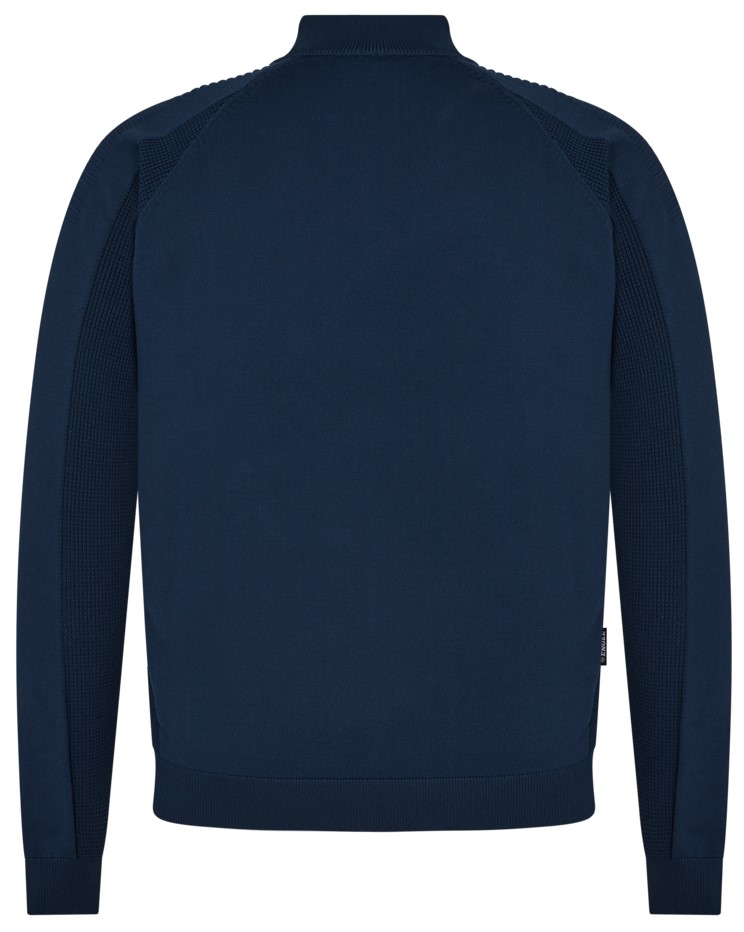 Chic cardigan made from lightweight and flexible material. High collar and zipper at the front. Side pockets with zipper. Special knitting effects ensure better ventilation in this knitted cardigan.
