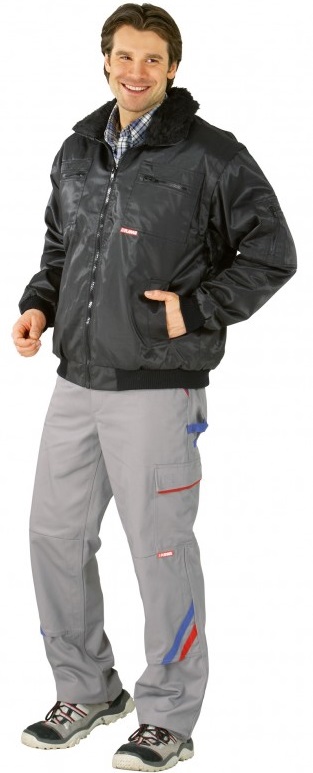 Cold protective clothing according to DIN EN 342, water-repellent, 2 side pockets, 2 breast pockets with zip, knitted cuffs on sleeve and waistband, sleeve pocket with zip, collar and inner lining with woven fur, inner pocket with zip.